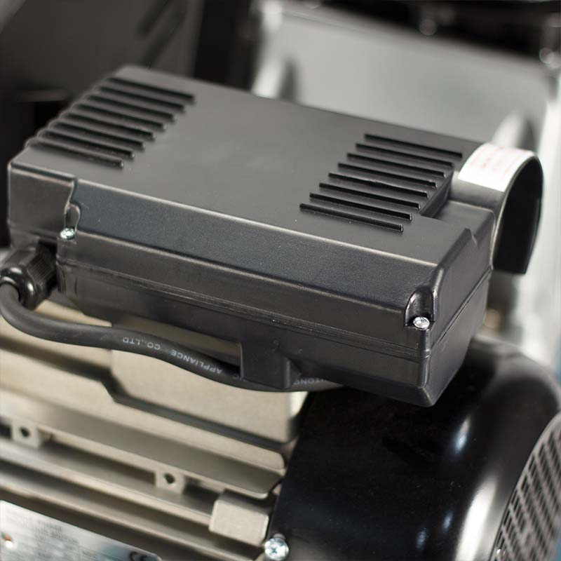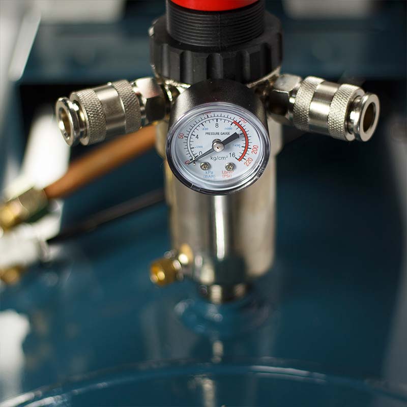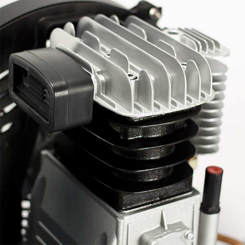 Αεροσυμπιεστής με ισχυρό κινητήρα αλουμινίου με ιμάντα, με μεγάλο καζάνι και ικανότητα μεγάλης παροχής αέρα. Με δύο μανόμετρα για ένδειξη πίεσης αέρα καζανιού και εξόδου. Η εργονομική λαβή και σετ τροχών το καθιστούν εύκολο στη μεταφορά. Η υδατοπαγίδα εμποδίζει την υγρασία να περάσει στο δίκτυο. Θα καλύψει τις ανάγκες των μηχανημάτων αέρος για κάθε απαιτητική εργασία.