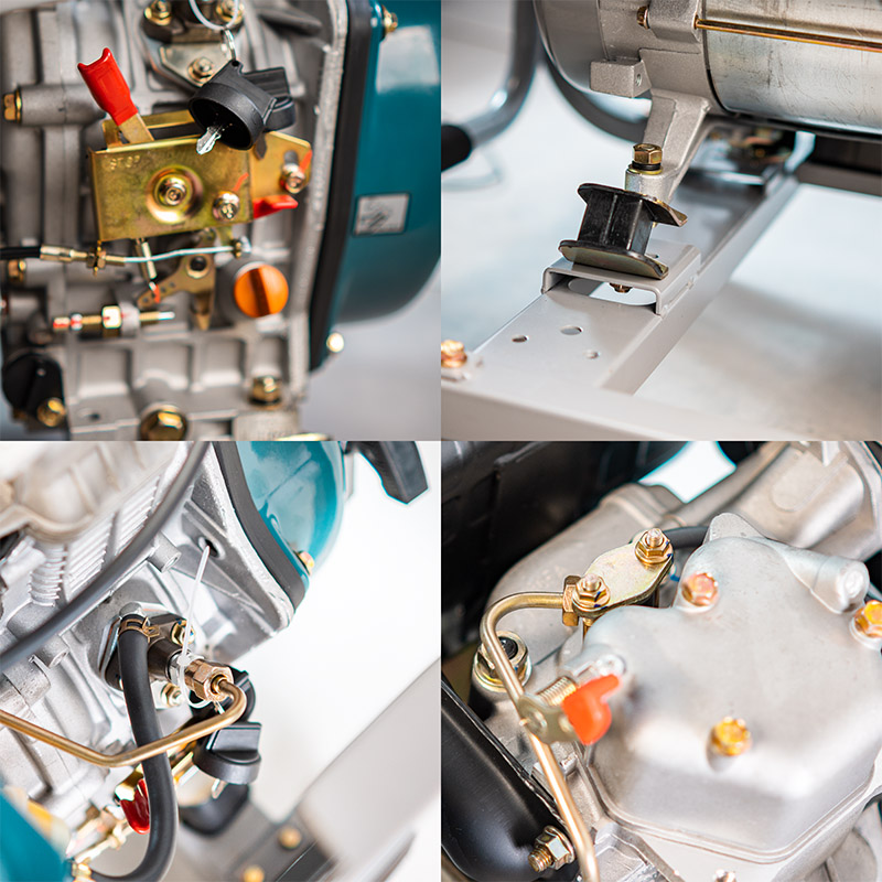 Η γεννήτρια φέρει ηλεκτρική μίζα και μπαταρία ειδικά σχεδιασμένες για ακαριαία εκκίνηση του κινητήρα.
